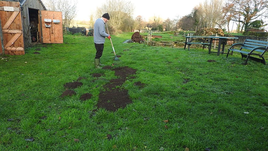 Eddie filled the bird food up while I raked lots of mole hills flat. The river level is even higher again this week, water is now under the wheel and up to the wall. Debra walked down with Hector so we showed Debra the log rack we made, which she likes, and we threw sticks and a football for Hector.