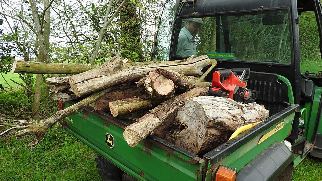 We went further down the river bank with saws to collect some fallen wood we found last week, we cut it to fit in the back of the Gator and brought it back for fire wood. We then went along to the swan’s nest but we couldn’t see if any more eggs had been laid as the female was sitting on the nest.
