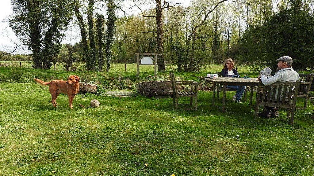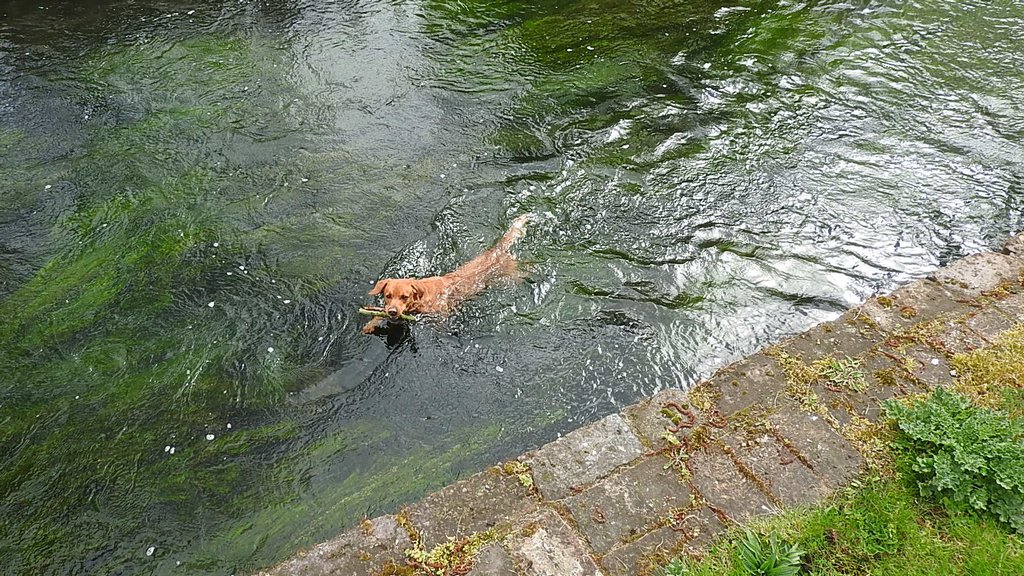 We had lunch outside and saw grey wagtails, a chaffinch, robin and a muntjac in a field. Debra and Hector walked down, Hector went straight in the river and we threw sticks and a football for him. We discussed the open days with Debra, which are only three weeks away.