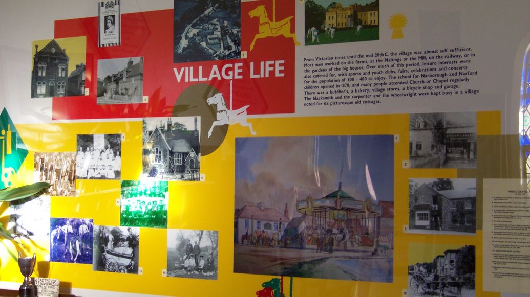 We also looked at some of the other exhibits in the museum like the farming display. This has a large feature panel on the wall as well as tools and implements and a box of pictures and documents. Another display panel is about village life in Narborough from Victorian times when the village was almost self sufficient, there are many old photographs. There are also displays about the River Nar valley, the railway, and RAF 59 Squadron.