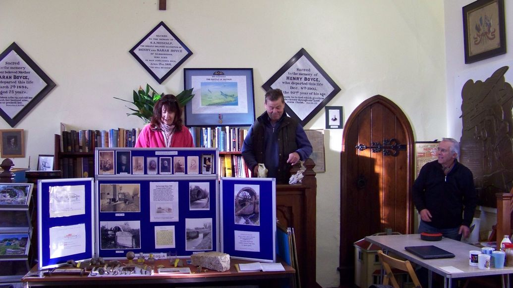 Two people have almost completed the large bookshelf in the pulpit which is part of the Aviation section and has around 300 books. The leaflets and magazines from the bookshelf under the farming display were listed on a notepad ready to be transferred to the database later to make the most of the time available at the museum. These cover a variety of topics including railways, farming, lawn mowers, historic pottery, general local history, waterways, and wartime.