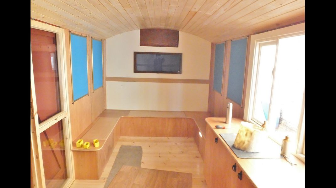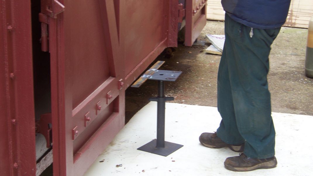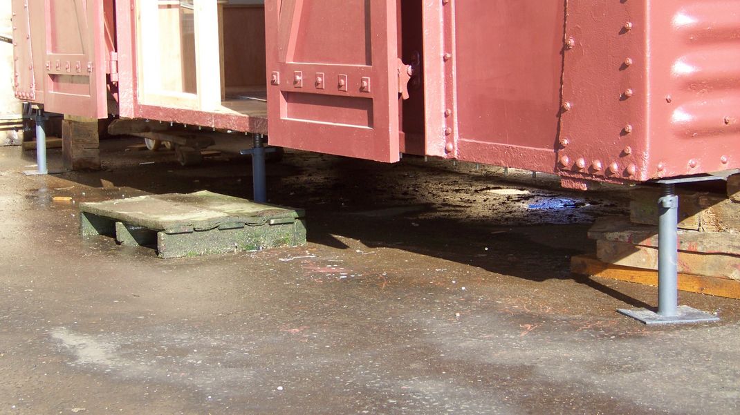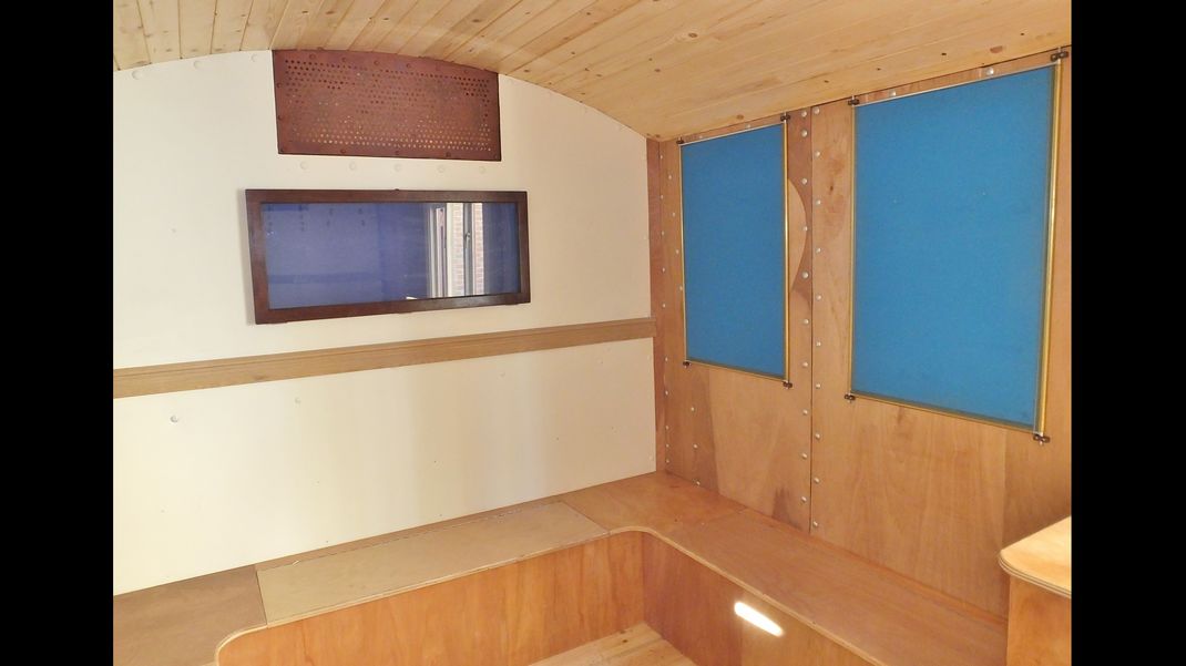 Finally the stands which support the wagon were drilled and bolted to the underside, this involved removing the kitchen unit to access holes in the floor and we made captive bolt heads, screwed to the floor. The stands can be removed for transporting the wagon and refitted easily on site.