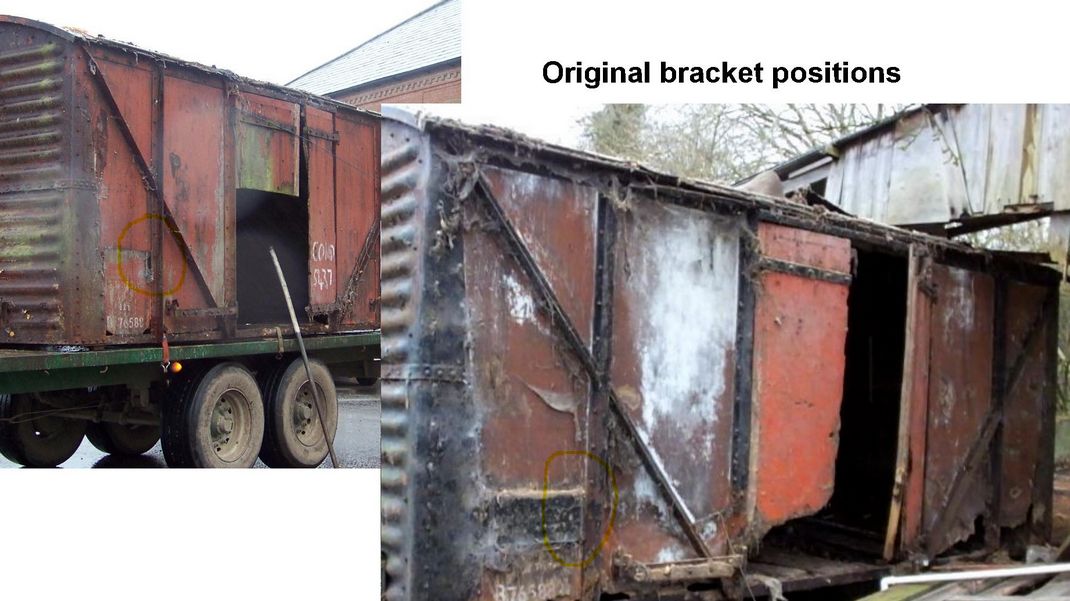 We couldn’t see where the remaining brackets go, so we looked at pictures taken when the wagon was moved. They show there is one right hand bracket on each side panel and both left hand ones are missing. So now we know where to fit them on the new plywood panels, and another set needs to be made to replace missing ones.
