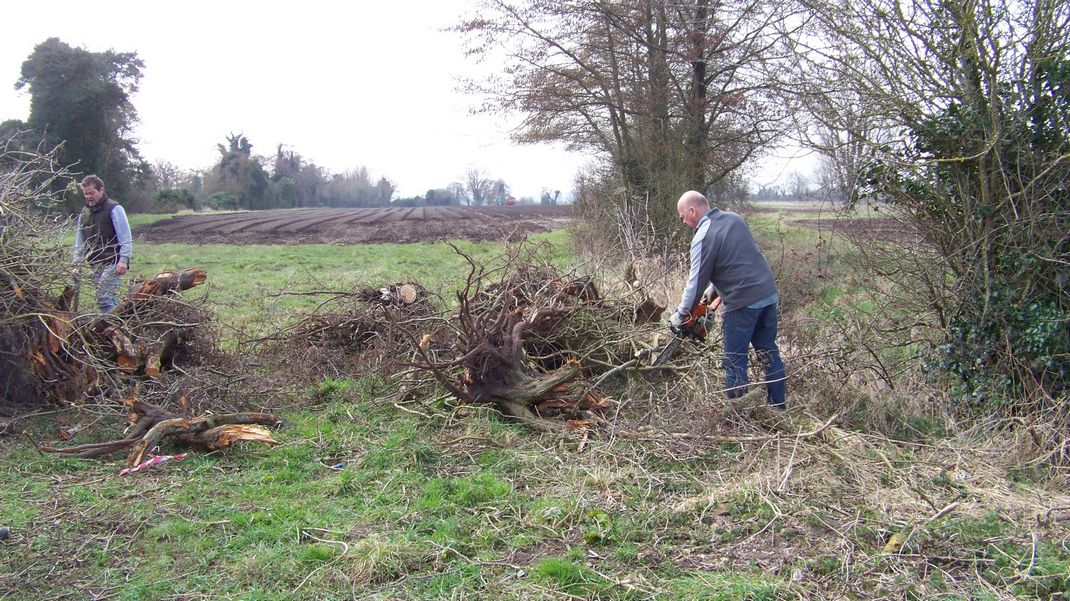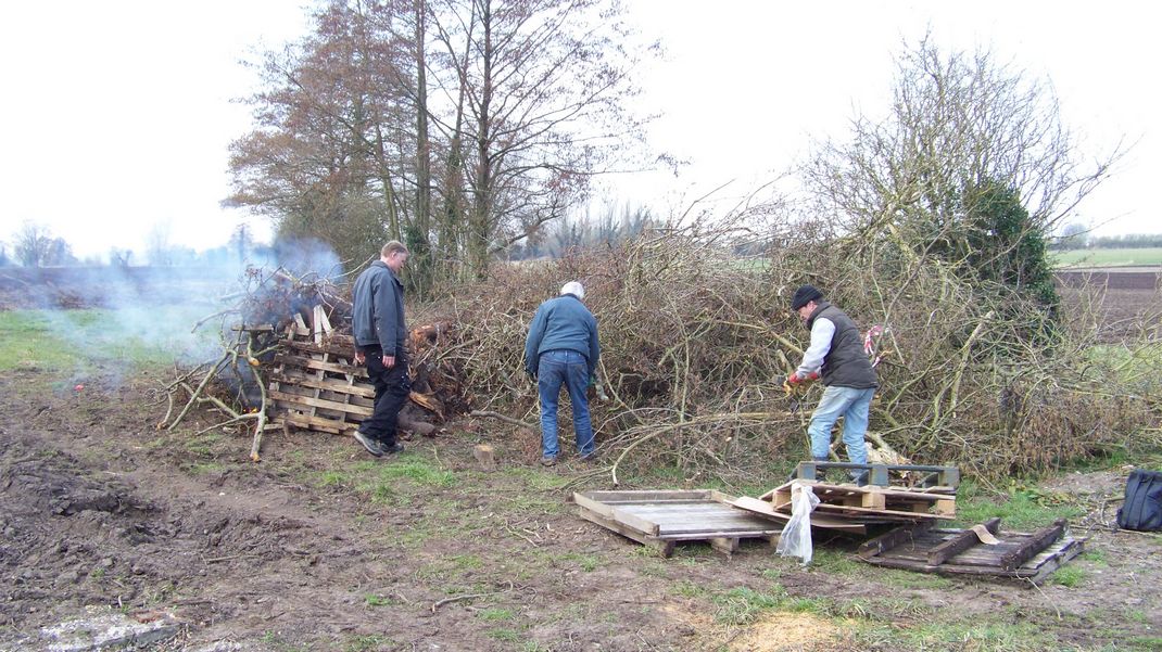 There were 6 of us working for most of today, we all went to the mill where the main task was moving the tree which was cut down at the weekend and all the other rubbish around the site, mainly broken pallets and fallen branches. We used chainsaws to cut up the larger branches. The fields around the mill were being worked with tractors preparing for growing potatoes.