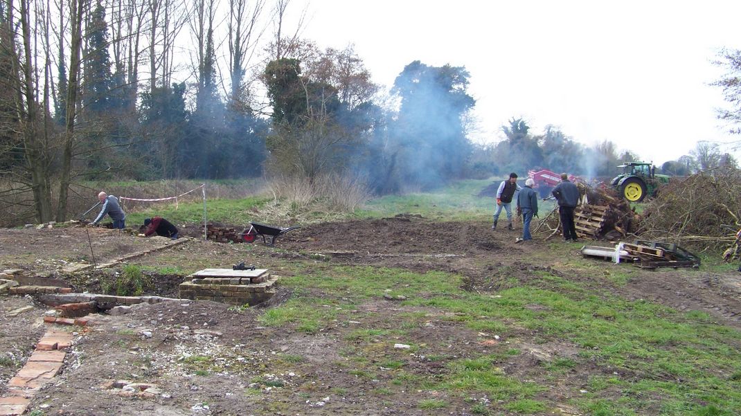 We discussed various options for the site including where to locate the railway wagon visitor centre, how best to deal with the uneven floor in front of the water wheel, and how to landscape some areas. It was agreed to have grass and wild flowers in one area. Debra and Abbie joined us later and viewed our work and helped us clear up.