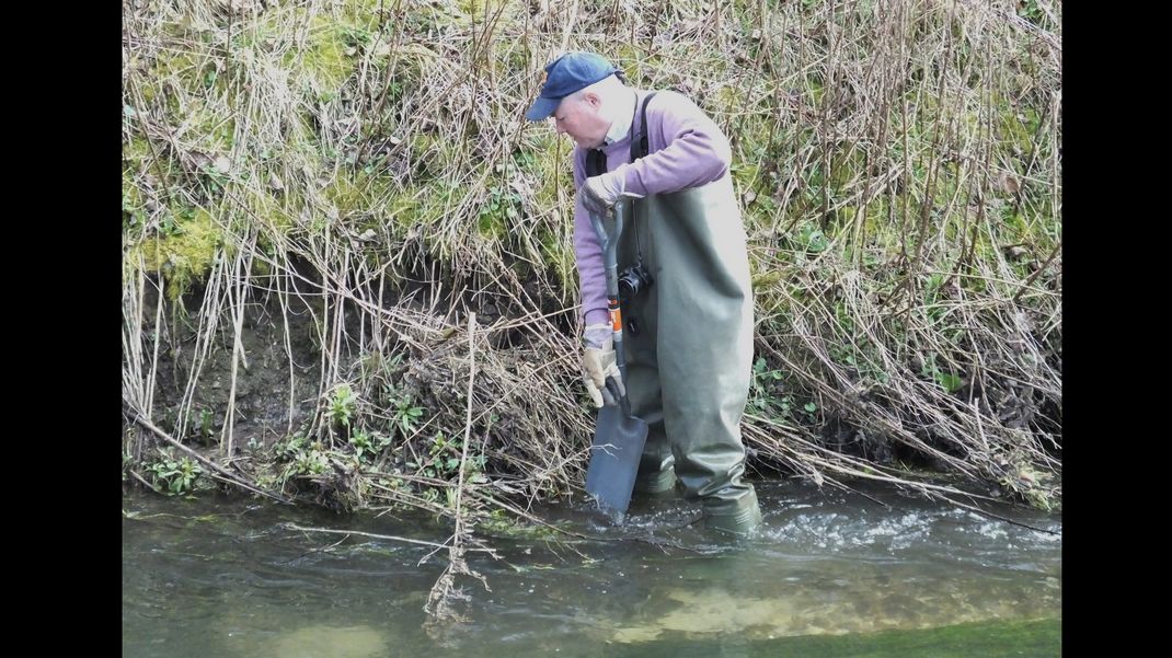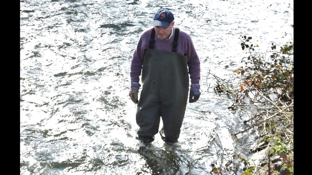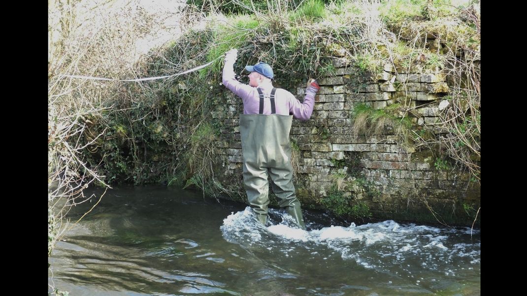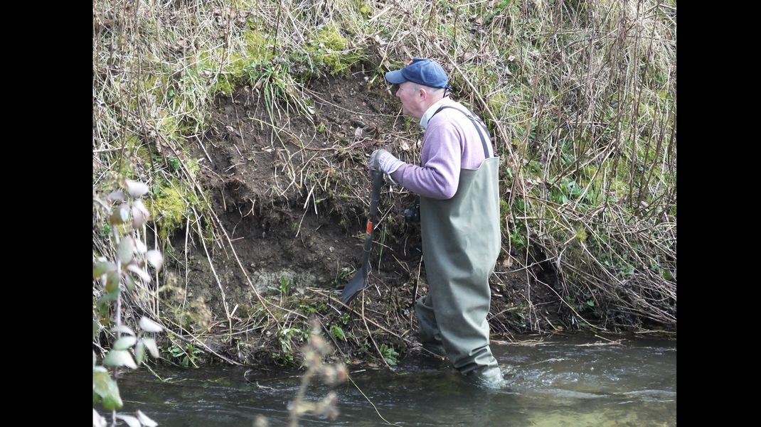 Graham crossed the river twice in waders as the river level has dropped back to normal after the high rainfall of last week. The first crossing was in the blacksmith area to measure the span for a swing bridge, then down river from the mill to prepare an area for Kingfishers to nest, as they like a soil bank with no vegetation, so part of the bank was cleared for them.