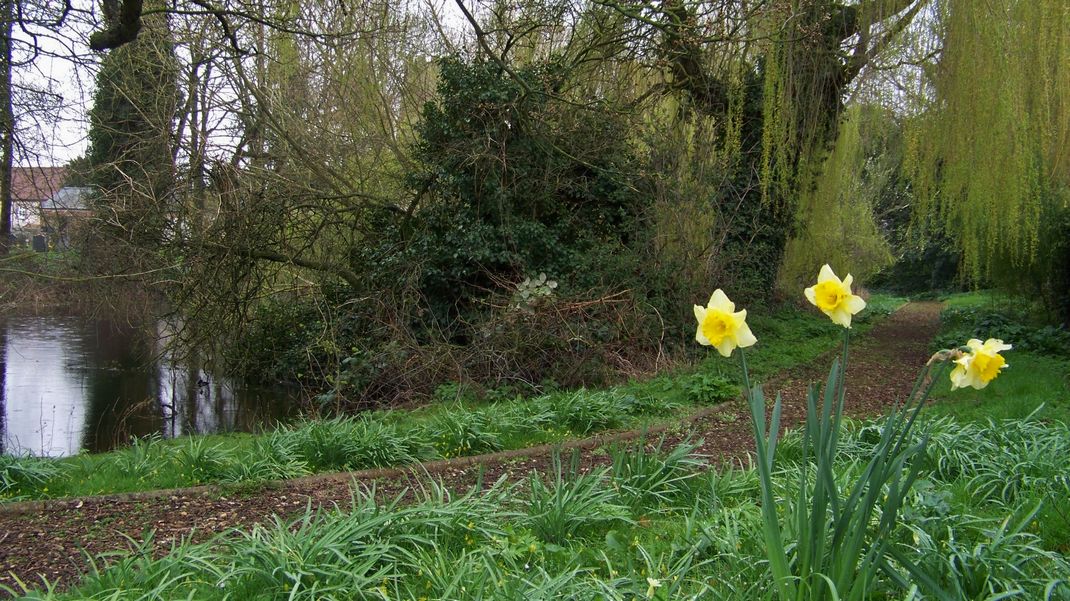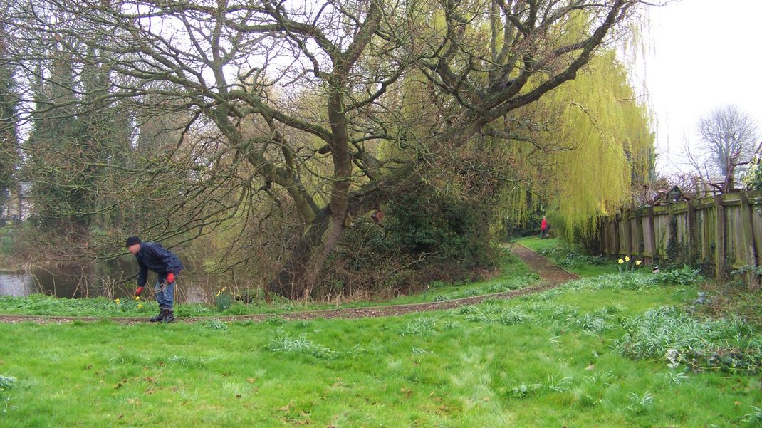 A very small amount of litter was noticed so we litter picked the area. A Squirrel was running around in the Beech tree and there was a Moorhen and Duck on the pond. Although the Snowdrops had finished, there were Bluebells, Primroses and a few Daffodils in flower.