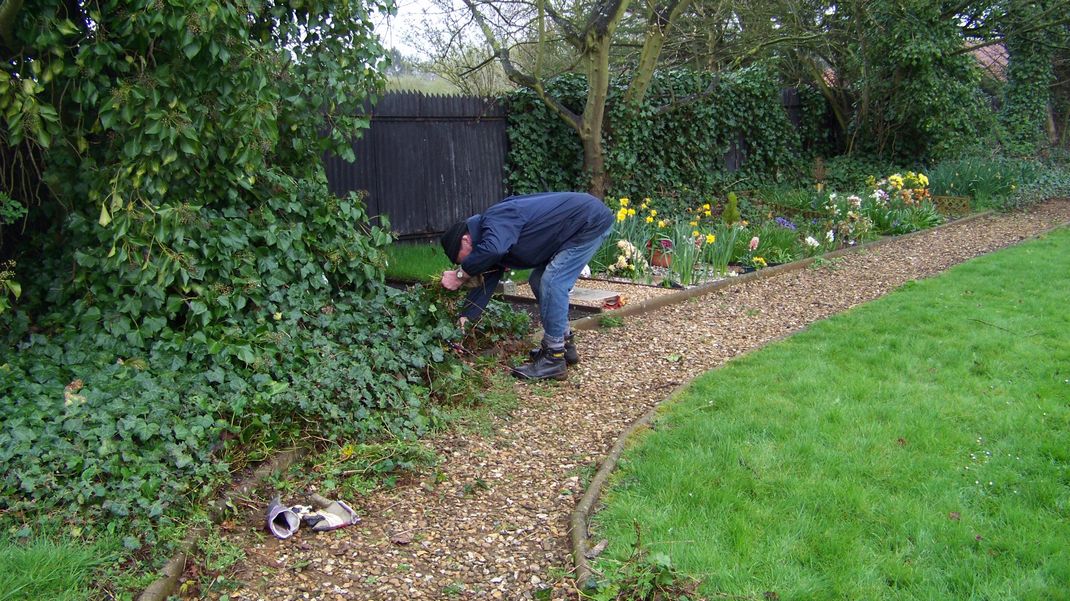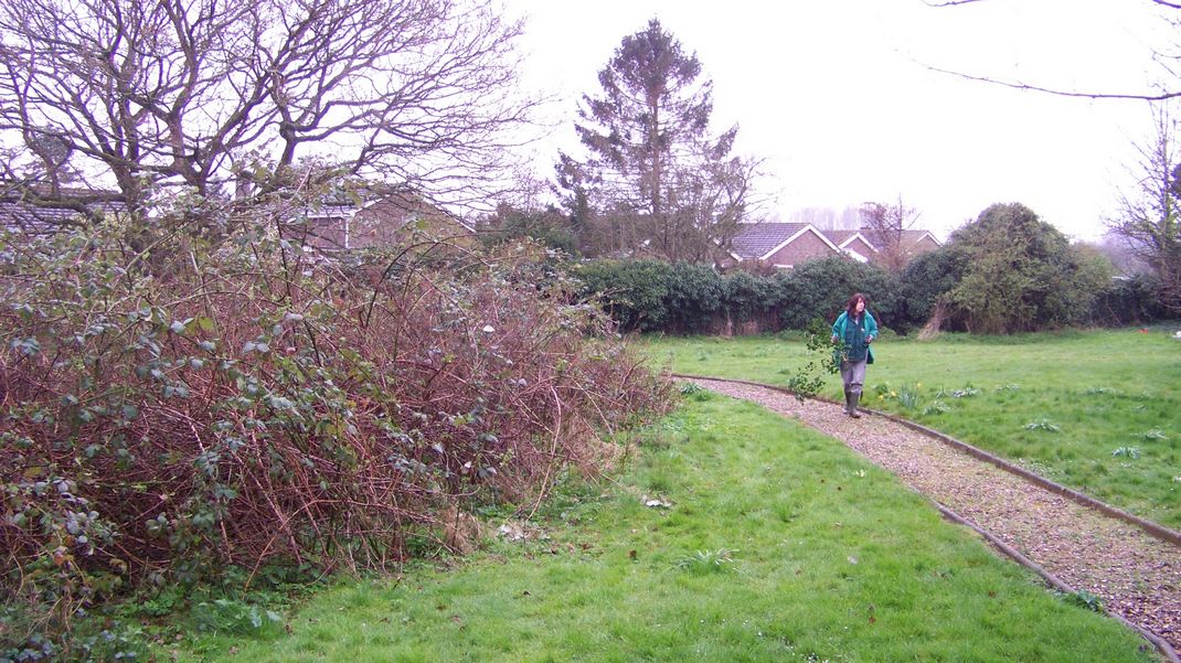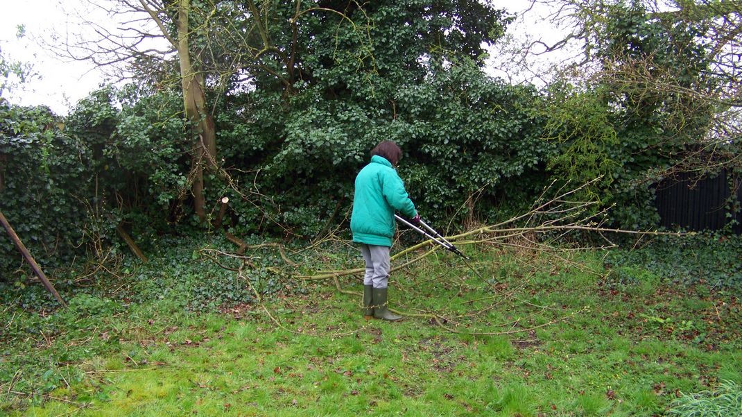 Brambles and Ivy were cleared from many areas especially where they were invading paths and banks. Jan brought us tea and biscuits then cut Ivy from around trees to prevent it damaging them, the tree in the far corner had extra trunks coming up so one was cut down to keep the main tree healthy.
