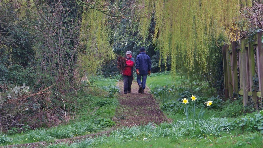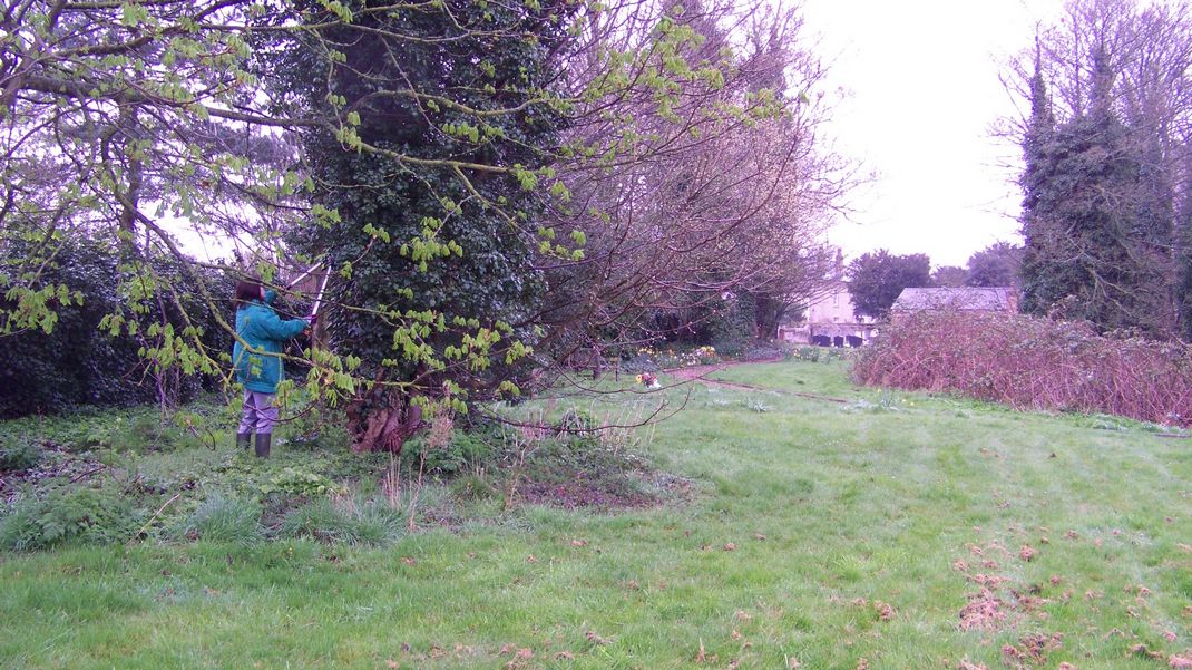 On Tuesday a team of four bonemill volunteers cleared up the extended churchyard. We raked up leaves and twigs from the footpaths and cut back the weeping willow which was hanging low over the path. Fallen branches which had come down in the last high winds were cut up and cleared, then made into habitat piles for wildlife.