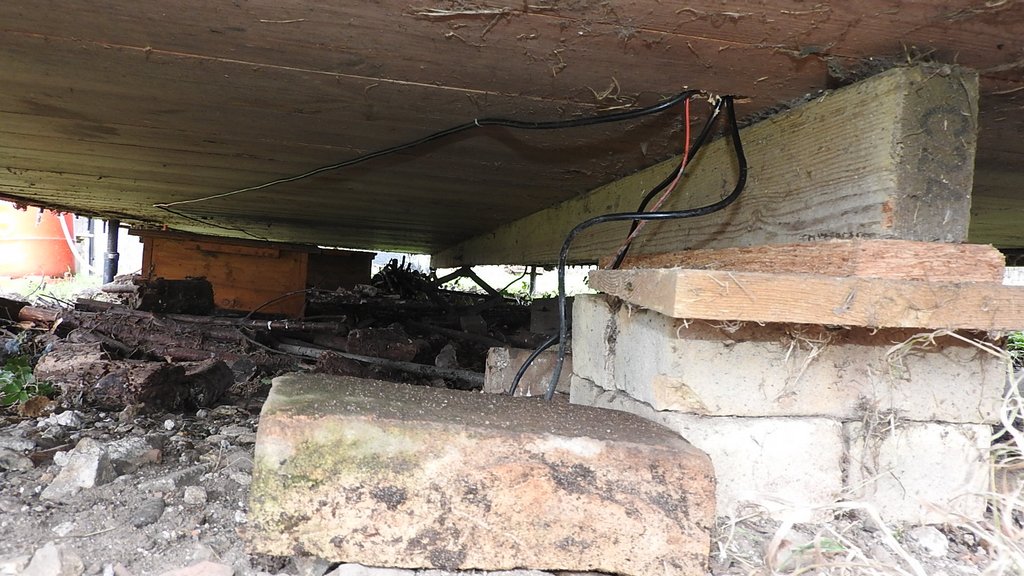 We needed to tidy up the camera cable from the blue tit box on the visitor centre, I covered the white trunking that protects the cable next to the garden with black material and stapled it to the building to disguise it. I stapled the other end of the cable to the underneath of the wagon floor to hold it in place and avoid damage.