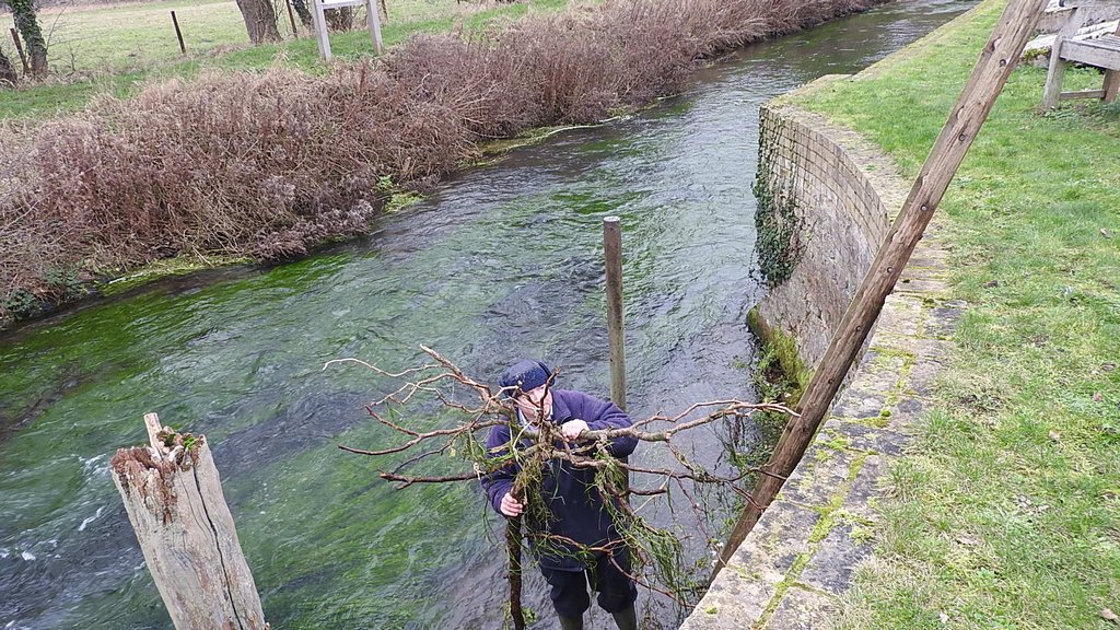 There was a large branch in the river behind the water wheel so I got the ladder and retrieved it, Eddie cut it up, he also cut up logs we brought back from the fallen trees we cleared last time. While we had the ladder out I used it to access the great tit box on the tree to clean cobwebs out and adjust the camera angle to get a better view.