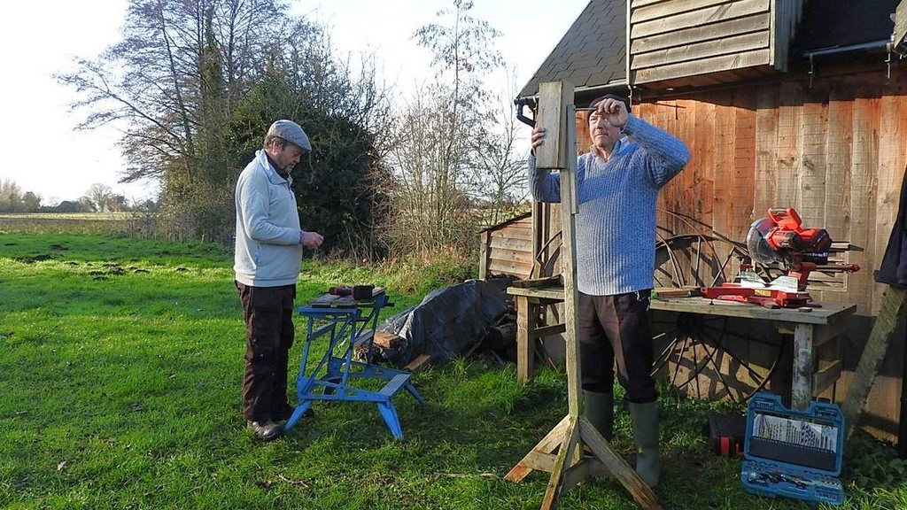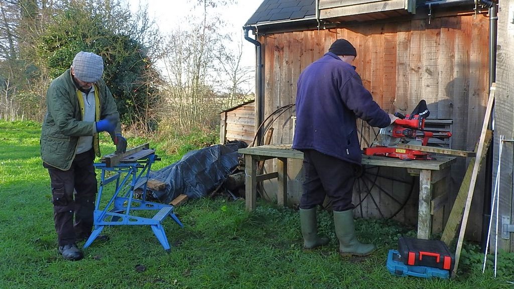 Thursday 4/12/25 It was a cold rainy day so Eddie lit the fire and we had tea in the wagon before starting work. We noticed the river level is higher this week, there is more water behind the water wheel.