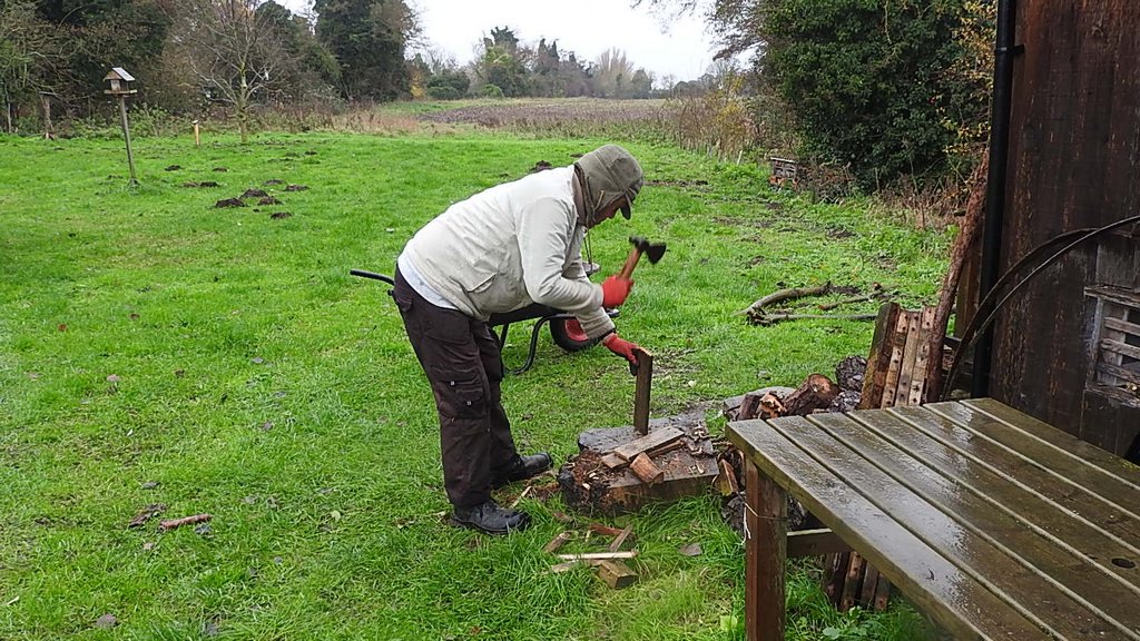 I also put chairs from the visitor centre in the compound under black material to keep them clean, this gives much more space in the visitor centre which I used to split pallet wood for kindling with the log splitter, Eddie used an axe outside to split some as well, which gave us two more tubs of kindling which we put in the wagon to dry.