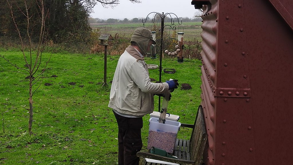 We covered the rest of the outside logs with black material to keep them dry until there is room for them in a logstore. We then filled up the bird feeders. When we got back to The Maltings we saw a heron fly up into a tree.