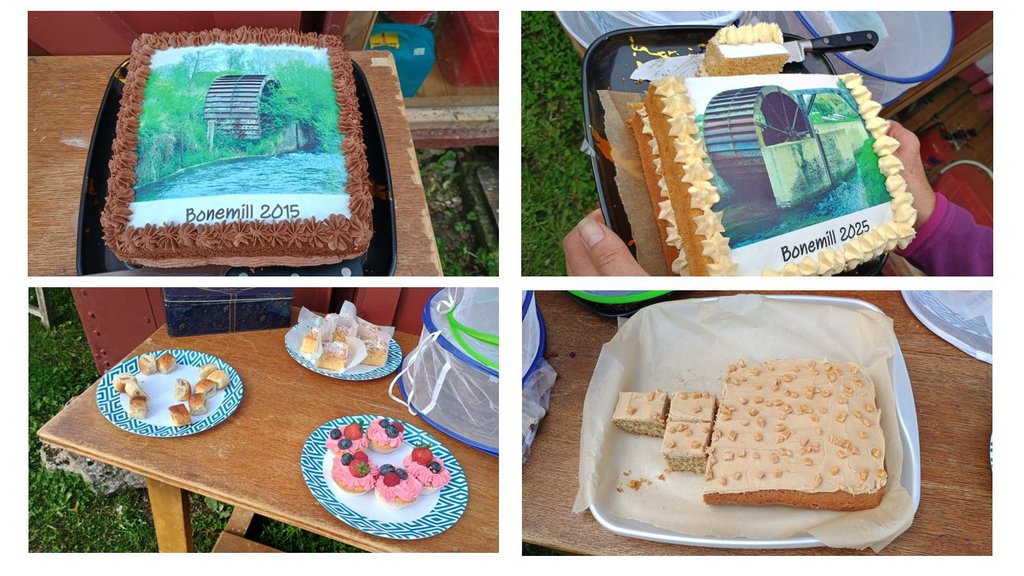 We celebrated 10 years of working at the mill with Before and After pictures of site features and early finds on display in our gazebo. As usual we had slideshows in our visitor centre of the early work repairing the water wheel and brick walls in 2015.