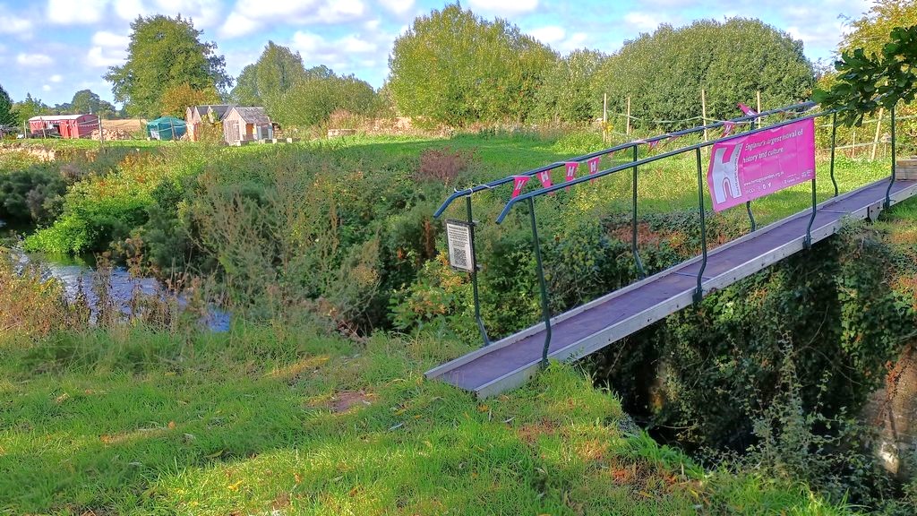 We put our swinging footbridge across so visitors could walk from Narford, Pentney and Marham along the Nar Valley Way to join us. We recently cut the grass on the footpath opposite the mill, many visitors crossed the bridge to take pictures from the path which gives a good view of the water wheel.