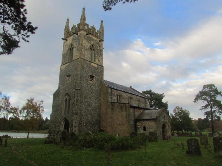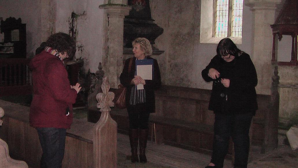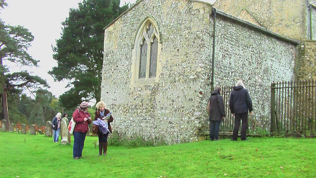 We then headed out to see some memorials for real. We visited two churches - one was St Mary's church at Narford. We had to battle our way through a very heavy downpour but it was worth it - the Church is in a beautiful setting. It sits by the huge lake of Narford Hall - a splendid building that sits close by. The Church is very rarely used these days and is in a state of disrepair but was still a very interesting building to view. We were amazed at the gaping hole in the bricks that lead down to the crypt - we were told by the Rev'd Stuart Nairn that it had been knocked through many years in the past by a member of the Fountaine family who was seeking out family treasure! Before our trip to Narford we ventured to All Saints Church in Narborough. Anne set us a task to find various examples of memorials and we spent a good hour there looking at memorials in this beautiful church including the stained glass window that is a memorial for the Marriott family which takes us back full circle to the reason for the workshops - the bone mill, originally owned by the Marriotts.