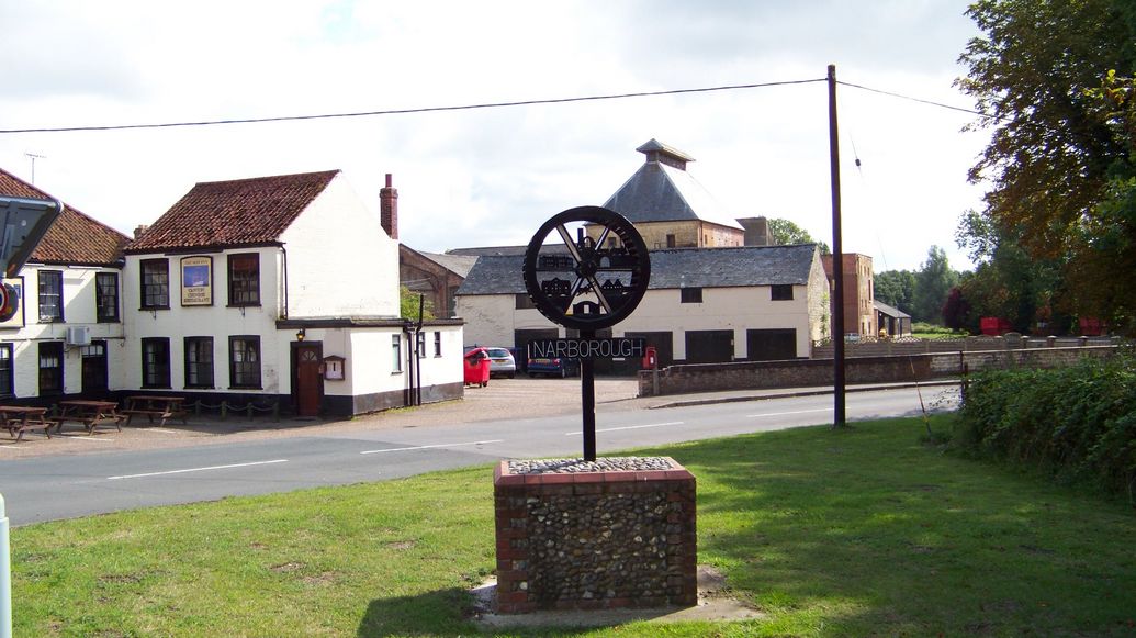 Opposite the chapel is the entrance to Narborough Hall. At one time Narborough Hall estate encompassed nearly all of the village apart from the Maltings and Glebe land. The Lordship of the manor once belonged to the de Narburgh family who took their name from the village. In 1461 when William de Narburgh died the estate was inherited by his daughter Ela whose second husband was Henry Spelman. It was their son John Spelman who was then bequeathed the manor.