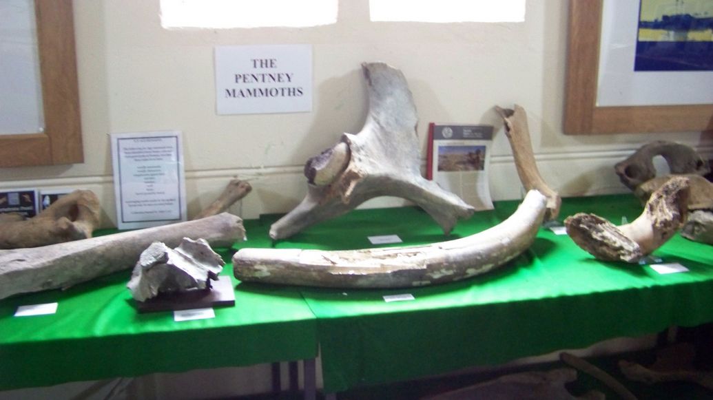 We then took a trip out to the village, first visiting the heritage centre where the model village is displayed. It also has some other interesting exhibits including the human skull and other finds from the bone mill project, Pentney Mammoth bones, tusks and teeth, and a section about Narborough airfield’s 59 Squadron.