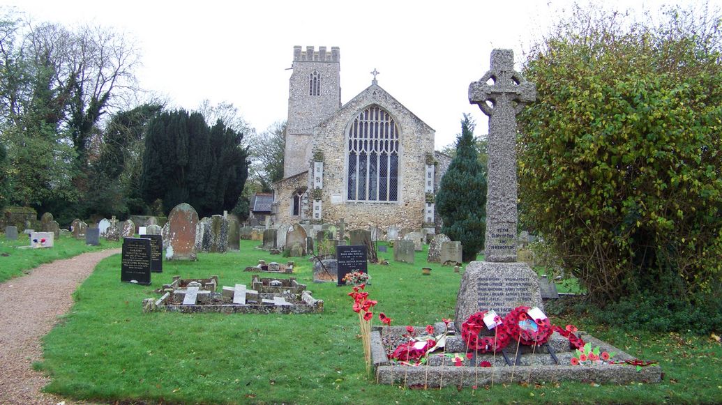 We then went to Narborough Hall owned by Robert & Joanne Sandelson where David’s father was head gardener from 1915 to 1965, and we saw the commemorative bench in the kitchen garden in his memory. David showed us around the outside of the building then went into the Phoenix room and entrance hall. We walked round the grounds seeing the formal gardens, lake, riverside walk, iron age fort and the cricket pitch in the distance. We noticed the Wisteria has now been tidied up and does not obscure the windows any longer. Afterwards several people looked around All Saints Church yard which is where the war memorial is located near the entrance gates.